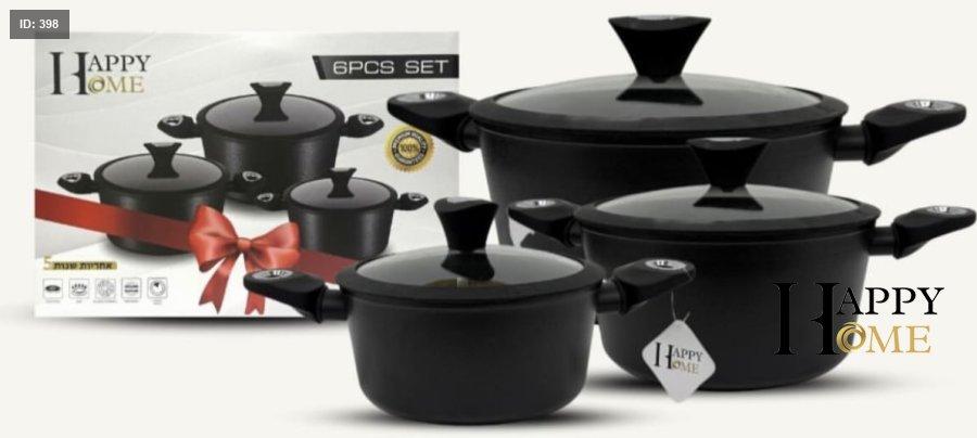 اكتشفي الفخامة في مطبخك مع طقم طناجر Happy Home الأسود!