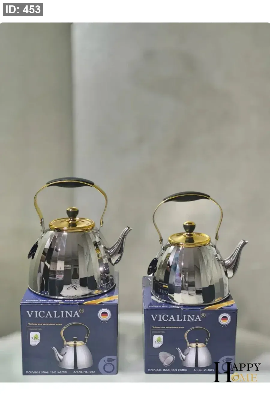 إبريق شاي فضي (لون ستانلس ستيل لامع) من شركة Vicalina (بتقنية ألمانية وجودة عالية)، مصنوع من الستانلس ستيل الغذائي المقاوم للصدأ والتآكل.