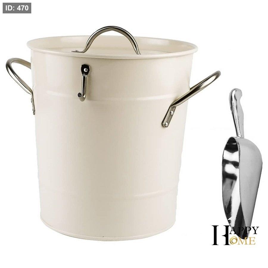 دلو ثلج أنيق بلون بيج مع مجرفته – لمسة فخامة لجلساتك!