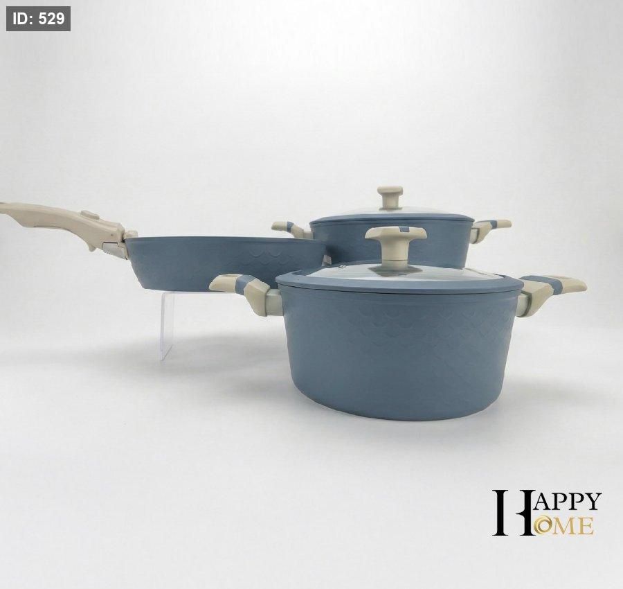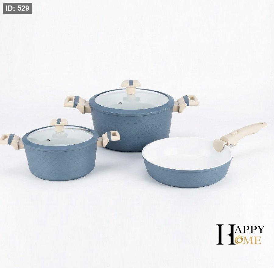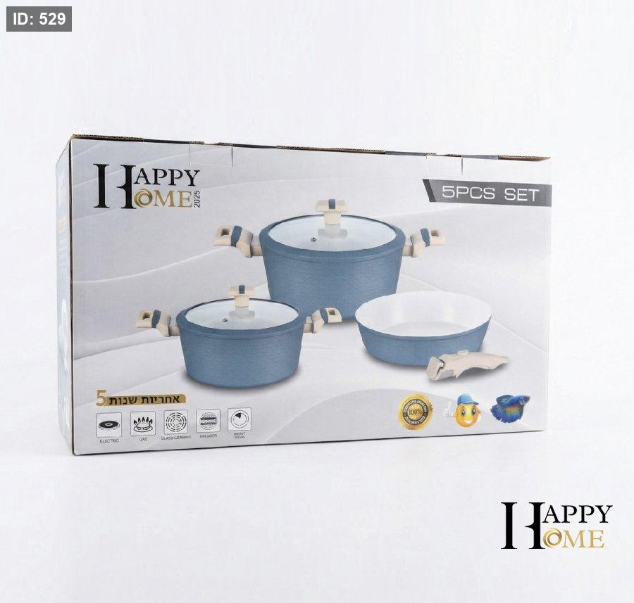 مع طقم Happy Home، ستحصلون على أداء طهي فائق وتصميم عصري يضفي لمسة جمالية على مطبخكم. اطلبوه الآن واستمتعوا بتجربة طهي مريحة وآمنة!